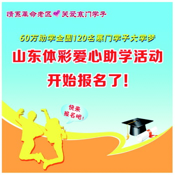 今年的活动由山东省体育彩票管理中心、大众网联合举办,活动采取网上报名的方式,报名者登录“山东体彩网”(www.sdticai.com)或“大众网”(www.dzwww.com)进入“情系革命老区 关爱寒门学子”山东体彩爱心助学活动网上报名平台进行报名,报名时间为2018年7月6日-8月14日。