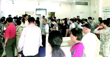市民在工行网点排队领取退休职工二代社保卡。 通讯员 崔斌龙摄