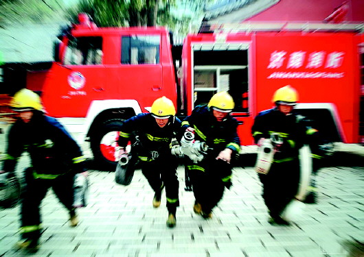 消防官兵奔赴抢险救灾最前线。