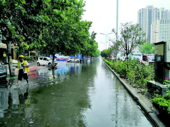 该路口的积水可以“看海”了。 本报记者 赵念东 摄