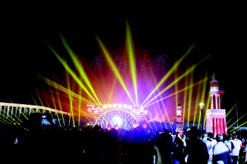 在第28届青岛国际啤酒节开幕式上,170架无人机金沙滩啤酒城上空绘就的“上合啤酒节”“青岛世界”字样,以及两个啤酒杯“干杯”图案,给游客带来了极大震撼。据本届啤酒节文化活动执行总导演王功介绍,无人机共展示9个图案,为了这7分钟的表演,制作团队整整准备了3个多月。