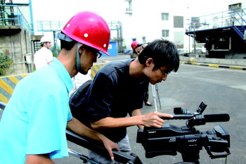 日职学生在为一家企业拍摄宣传片。