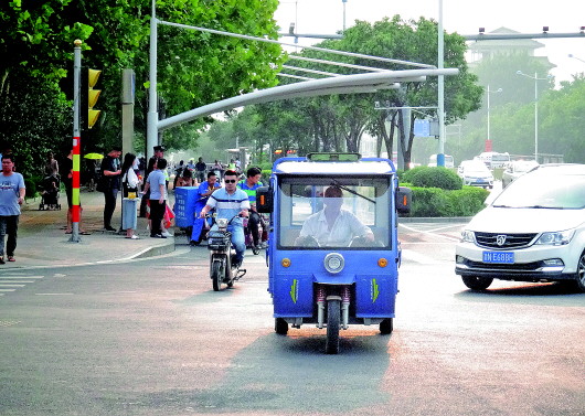 8月2日,三轮车在济南经十路和环山路等路段行驶,其中以送快递、送货的改装车居多。 本报记者 左庆 摄