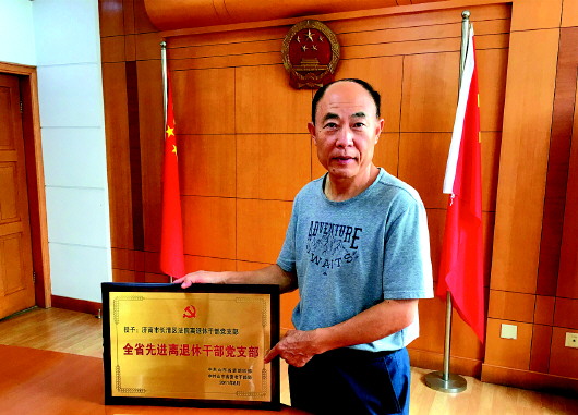 2011年,十支部被授予“全省先进离退休干部党支部”荣誉称号。图为郭久明。