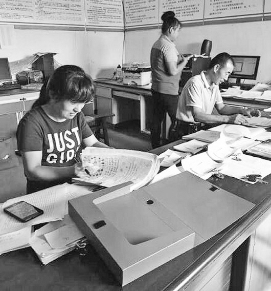 工作人员查看农村集体产权制度改革工作一阶段档案。