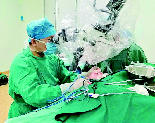 正在进行微血管减压手术的刘志国。 本报记者 石剑芳 摄