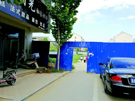 围挡上开了小门,供行人来往。 本报记者 刘慧 摄