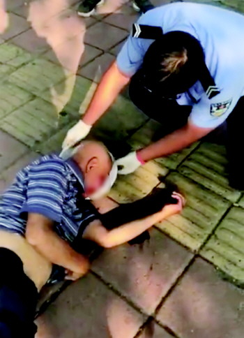 8月2日早晨7时40分许,淄川交警大队两名辅警胥超、张文帝在张博路淄川区医院门口路段执勤时,一位市民慌张地跑来对他们说:“在区医院门口人行道上有位老大爷骑车时摔倒在地,血流满面,伤势不清,需要民警同志帮助一下。”
