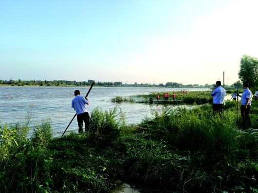 20日下午6时,在寿光孙家集街道岳寺李村弥河桥南4公里左右,搜救人员正在现场对落水失踪的两名辅警进行搜救。 本报记者 李晓东 摄