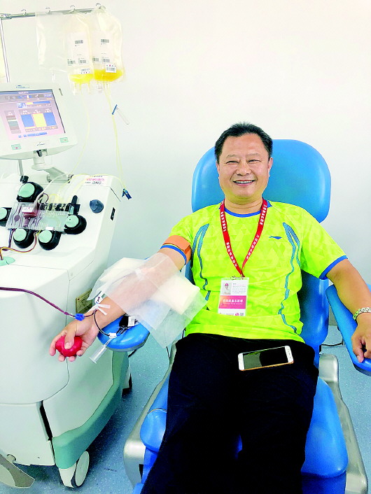 图片6484630 来源:齐鲁晚报 2018年08月21日 近日,连日阴雨天,加之临床需求量增加,省城临床用血小板告急。 据了解,捐献血小板与捐献全血不同,血小板无法在街头采集。济南市历下区山师东路22号山东省血液中心与长清大学城商业街6号楼1区102、103可以接受捐献。图为“献血大王”郭洪伟正在捐献血小板。 本稿件所含文字、图片和音视频资料,版权均属齐鲁晚报所有,任何媒体、网站或个人未经授权不得转载,违者将依法追究责任。