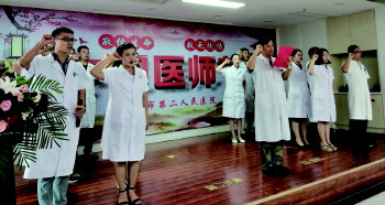 二院医师们在宣誓。 本报记者 张建丽 摄