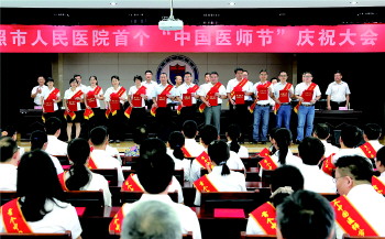 会上,日照市人民医院对全院评选出的100名优秀医师进行了表彰;6名优秀医师代表作了典型发言;享受国务院特殊津贴、医院妇产科老专家董蔚讲述了从医55年的感人事迹;李乃学局长、杨淑光理事长分别代表市医管局党组和医院党委作了讲话。