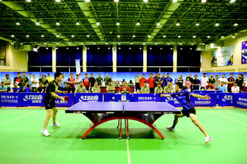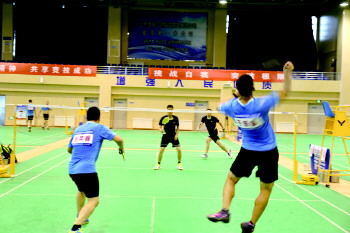 赛场上,参与比赛的运动员拼尽全力打好每场比赛。
