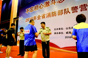 为做好部队改革期间思想政治工作,活跃警营文化氛围,2018年山东省消防部队警营文化月启动仪式,于8月15日在威海市体育场拉开帷幕,全省消防部队共计18支代表队参加比赛,经过3天的激烈角逐,2018年全省消防部队乒乓球、羽毛球比赛在威海顺利落下帷幕。山东省消防总队王伟政委、威海市公安局丛刚滋副局长等领导出席闭幕仪式并为获奖单位和个人代表颁奖。
