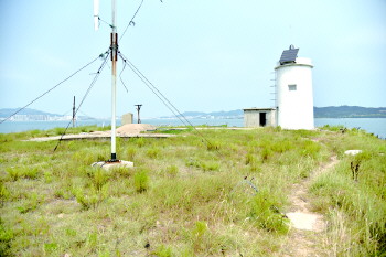日岛西侧,有一处简易的码头,只能停靠挂机船、摩托艇之类的小船。码头旁,砂砾混杂着牡蛎壳铺就了一处白色的小海滩。岛的西侧为一处略为平缓的平地,东侧就是一座小型山头。