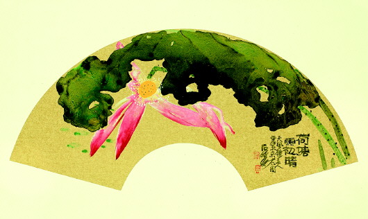 ◥扇面 荷塘雨初晴