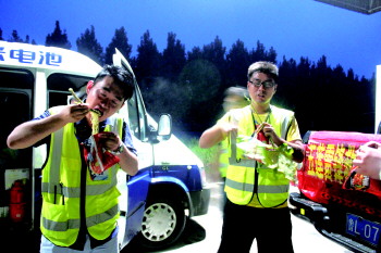 连夜救援,吃饭用树枝当筷子