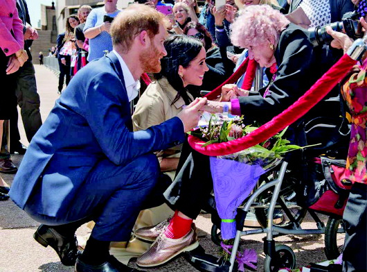 在澳大利亚的英国“王室粉”中,有一位特别的老人。她叫达芙妮·邓恩,是一名二战老兵遗孀,今年已经98岁,可以说是哈里王子的资深“迷妹”。邓恩在2015年和2017年哈里王子出访澳大利亚时都与王子有过近距离接触,这次她又坐着轮椅来了。