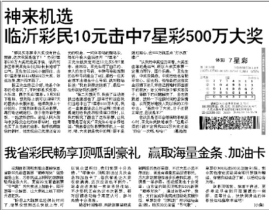临沂彩民10元击中7星彩500万大奖