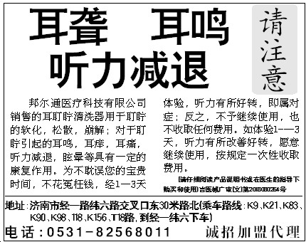 邦尔通医疗科技有限公司销售的耳耵聍清洗器用于耵聍的软化,松散,崩解;对于耵聍引起的耳鸣,耳痒,耳痛,听力减退,眩晕等具有一定的康复作用。为不耽误您的宝贵时间,不花冤枉钱,经1—3天体验,听力有所好转,即属对症;反之,不予继续使用,也不收取任何费用。如体验1---3天,听力有所改善好转,愿意继续使用,按规定一次性收取费用。