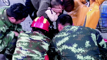 救援人员到达现场了解情况后得知,被困小孩是一名3岁男孩,在乘坐电动车后座时,双脚晃来晃去,导致脚被卡在车轮架与后轮缝隙处。若直接将小孩的脚从缝隙拔出,稍有不慎将带来二次伤害。根据现场情况,消防员立即开展救援。首先用衣物将小孩脚部包住,防止在救援过程中对小男孩脚部造成伤害,再利用无齿锯将电动车后轮车轴锯开,同时配合其家长稳定被困小孩的情绪,避免小孩情绪不稳增加救援难度。经过5分钟左右的紧急救援,男孩被卡住的脚成功脱困,随后被送往医院。
