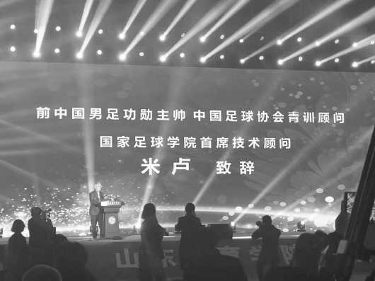 前中国男足功勋主帅、中国足球协会青训顾问、国家足球学院首席技术顾问米卢先生在致辞中指出,作为国家体育总局与山东省共建的国字号专业足球学院,从一开始就按照国际化高标准进行建设,表现出了蓬勃活力和良好的发展前景,坚信这所成功的学校将会越办越好。