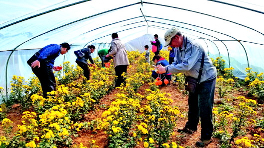 “贵妃菊的花瓣中含有17种氨基酸,富含维生素及铁、锌、铜、硒等微量元素,有清热解毒、养肝明目等药效。”肖楠说起自家村里最引以为傲的菊花,他可以滔滔不绝地说出它的诸多好处。