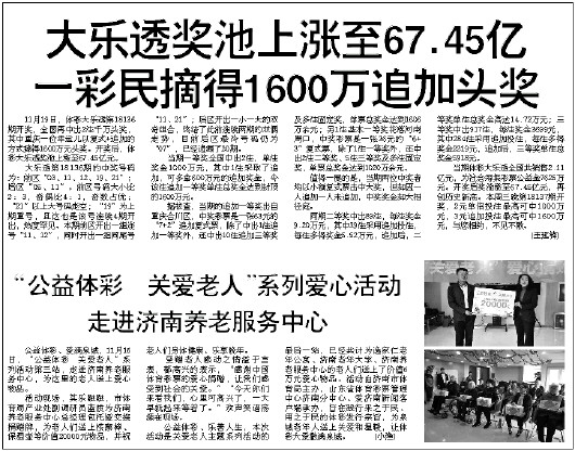 公益体彩、爱满泉城,11月16日,“公益体彩 关爱老人”系列活动第三站,走进济南养老服务中心,为这里的老人送上爱心物品。