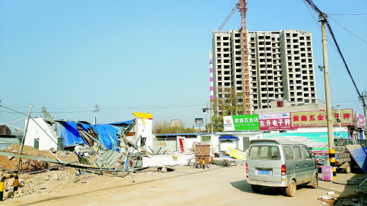 安置房早已在2015年1月封顶,南侧的违法加油站拖到今年8月终于被拆掉了,但是项目的征收目前仍没有结果。 本报记者 刘雅菲 摄