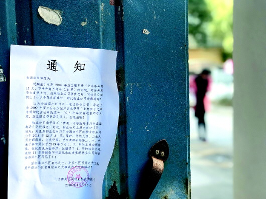 ◥物业公司张贴通知表示将“告别”金海岸家园小区。
