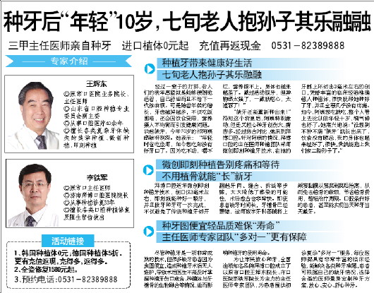 三甲主任医师亲自种牙 进口植体0元起 充值再返现金 0531-82389888