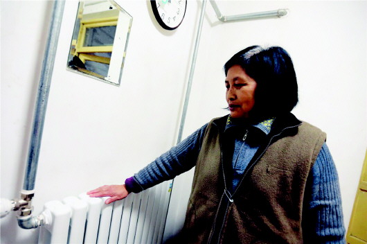 济南热电工作人员上门为居民检修暖气设施,经过检修,居民家中的暖气热了起来。