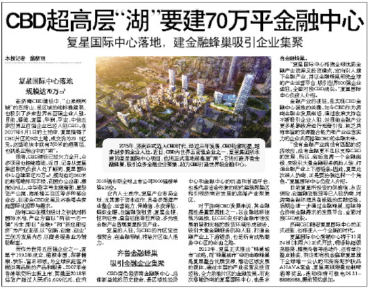 2015年,济南正式迈入CBD时代,经过三年发展,CBD轮廓初显,越来越多的企业入驻。近日,CBD内世界五百强企业之一,复星集团所承建的复星国际中心项目,也将正式落地超高层“湖”。它将打造齐鲁金融蜂巢,吸引众多金融企业聚集,助力CBD打造世界级金融中心。