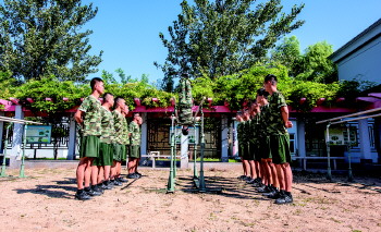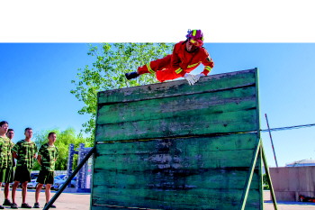 在黄河消防中队的每周教育训练计划表中,记者看到背空呼器5000米、负重3000米、搬运重物折返跑、爬绳上4楼、负重爬10楼、60米肩梯跑、400米疏散物资……这些项目都是他们训练的常规项目。冬天早上6点起床,夏天早上5:30起床,雷打不动进行操练。