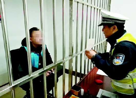 11月14日,济南市中交警查处了一名吸毒后驾驶奔驰轿车的驾驶人。警方供图
