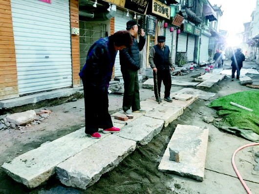 明府城管理中心相关负责人告诉记者,本次改造首先是要排除路面安全隐患,解决通行不便的问题。“大石板是我们收来的,用旧做旧,不是量产,新的石板怎么铺也铺不出老街的感觉。”