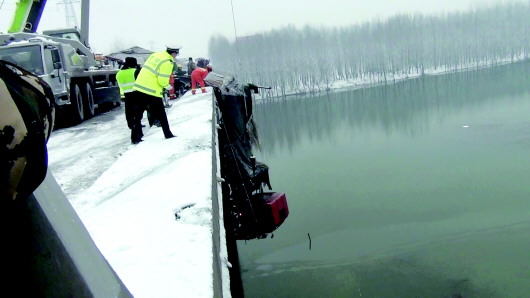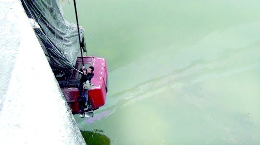 绝境脱险 来源:齐鲁晚报 2018年12月12日 11日,我省14市迎来降雪。由于雪天路滑,11日凌晨五点半,一辆半挂货车在临沂北外环沂河大桥冲破护栏后,多半车身悬空挂在大桥上,驾驶室距离水面仅有一米。(小图) 赶到现场的救援人员用重型拖车固定住半挂车尾部,然后用保险绳将两名被困驾驶员成功救出。(大图) 本报记者 邱明 通讯员 吕令震 陈健 摄影报道 本稿件所含文字、图片和音视频资料,版权均属齐鲁晚报所有,任何媒体、网站或个人未经授权不得转载,违者将依法追究责任。