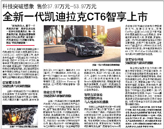 11月30日,新豪华科技旗舰全新一代凯迪拉克CT6在北京凯迪拉克中心CADILLAC ARENA智享上市。此次发布的全新一代凯迪拉克CT6共有六款车型,售价37.97万元-53.97万元。新车承袭了凯迪拉克概念车ESCALA的设计语言、搭载全新一代驱动系统技术和移动互联智能科技,并以傲视同级的豪华驾乘空间和全方位的主被动安全策略,为这个时代不守成规的创变者们带来全面革新的凯迪拉克新豪华体验。