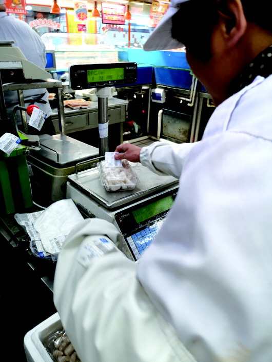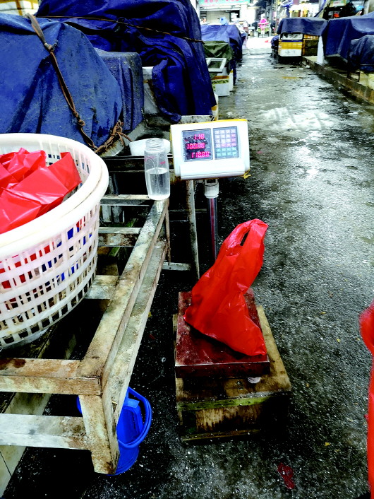 在济南海鲜大市场,很多摊位称重时都不去皮。