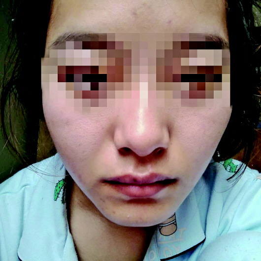 1月10日,常女士再次来到店里做祛痘。流程还是和第一次一样,用针刺过痘痘后敷面膜,只是这次店方没再赠送痘印贴。本以为两次祛痘后能治好脸上的痘痘,没想到第二天一大早,常女士突然感觉脸部肿胀。怀疑第二次祛痘有问题,她联系了苗医生,店员让她到店里进行护理,但敷了面膜后她的情况非但没有好转,反而越来越严重,不但肿胀明显,还有刺痛的感觉。无奈,她只好前往医院就诊。