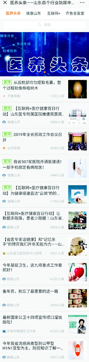 “医养头条”作为一个链接用户与医养资源有用平台,可以为公众提供关于医养的方方面面的需求。通过媒体的属性发挥更加权威传递政务的声音,宣传医院机构的信息动态,实现用户与资源的互动,承载着媒体转型的同时,也在最大程度地发挥着医养健康资源的优势,促进山东医养产业的发展。