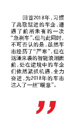 回首2018年,习惯了高歌猛进的车企,遭遇了前所未有的一次“急刹车”。但与此同时,不可否认的是,虽然车市经历了“严寒”,但在汹涌来袭的智能浪潮面前,处在逆境中的车企们依然紧抓机遇、全力奋进,为2018年的车市注入了一丝“暖意”。