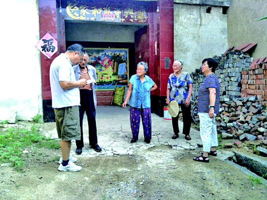 ◥王文起(左一)在五峰德峪做方言调查。(资料片)