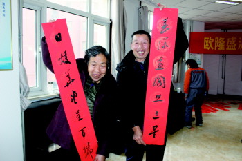 “眼看春节就到了,正准备去街上买上几副春联,听说小区里来了书法家为咱们老百姓现场书写春联,一大早我就过来了,这可比在外面买的印刷的春联珍贵多了。”居民李兆华先生刚领过一副春联,便迫不及待摊开,吹干春联上的墨迹。