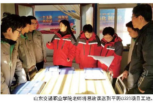 山东交通职业学院老师将思政课送到平阴G220项目工地。