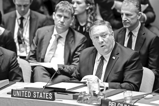 26日,美国国务卿蓬佩奥在联合国安理会会议上发言。 新华社发