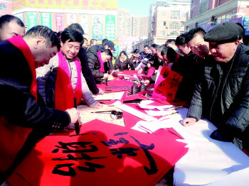 临近春节年味浓 书法家把春联送 来源:齐鲁晚报 2019年01月28日 一副副春联送祝愿,一句句吉言增瑞气。春节来临之际,由牡丹区市场监督管理局、牡丹区委“两新”组织工委主办的2019红盾情“万副春联送万家”活动顺利开展,书画名家们走进花都商埠和胡集镇胡集村等农村,为城乡居民送上一副副饱含墨香的春联。手写春联里满满的年味,深受广大群众欢迎。 本报记者 崔如坤 摄影报道 本稿件所含文字、图片和音视频资料,版权均属齐鲁晚报所有,任何媒体、网站或个人未经授权不得转载,违者将依法追究责任。