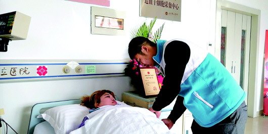 冯美在丈夫的陪同下采集造血干细胞。 本报记者 王小蒙 摄