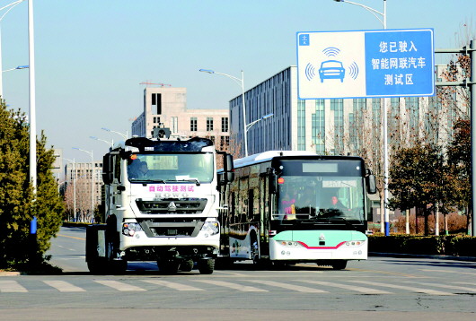 今年1月22日,济南市5G通信智能网联汽车测试道路正式开放,由重汽集团研发的无人驾驶公交车在全长4.8公里的测试道路上进行公开路测。这辆公交车集自动驾驶系统、车联网系统、平台监控系统、安全控制系统、自动开关门系统和到站自动停车系统于一体,配有激光雷达、高清摄像头、组合导航定位等设备。遇到信号灯和行人能自动减速、刹车。