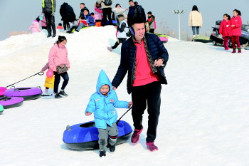 看到铺满白雪的雪道和斜坡,孩子们纷纷惊叹起来。滑雪场内10条滑雪道依次排开,孩子们乘坐滑圈,玩得不亦乐乎,大人们则乘上香蕉船,体验着冰雪世界的刺激。工作人员们还精心准备了小雪圈滑行比赛、雪地趣味拔河、踩气球等丰富多彩的亲子互动游戏,让孩子们在雪的乐园尽情享受童年乐趣,感受团圆的幸福。